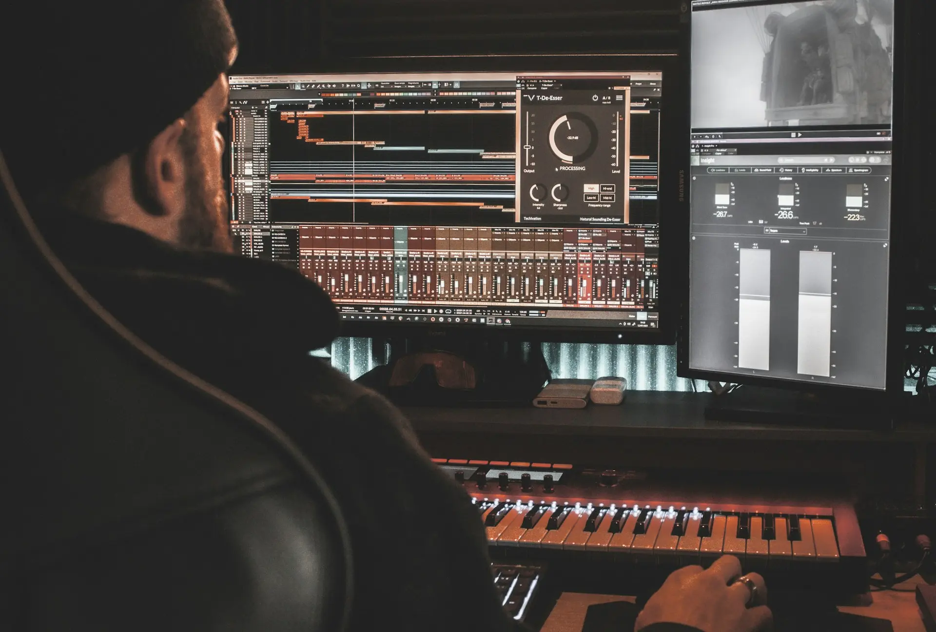 J+15 Le mixage est l'ajustement et l'équilibrage des différentes pistes sonores pour créer une bande sonore harmonieuse et de qualité optimale dans la production audiovisuelle finale.